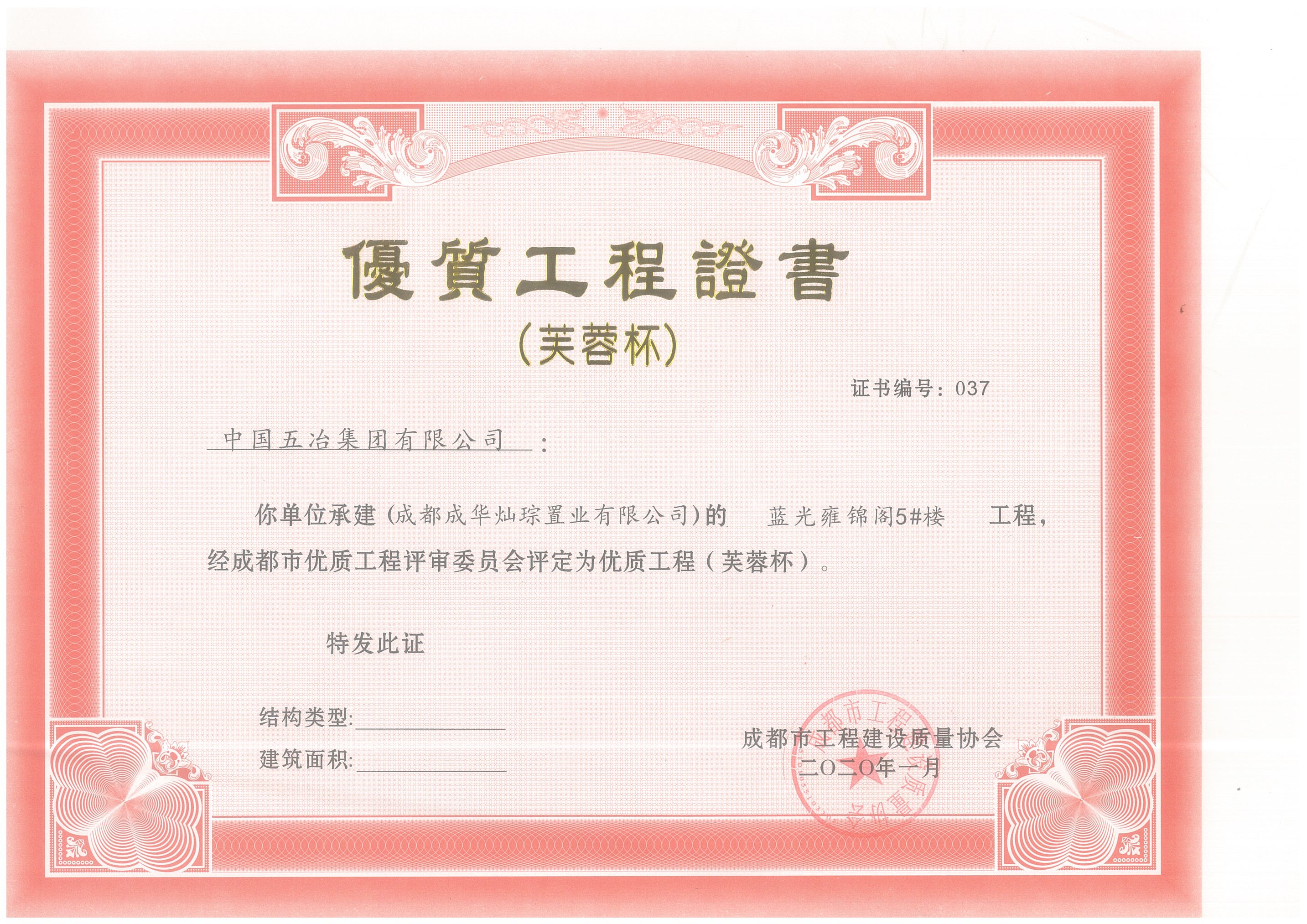藍光雍錦閣—2019年度芙蓉杯證書