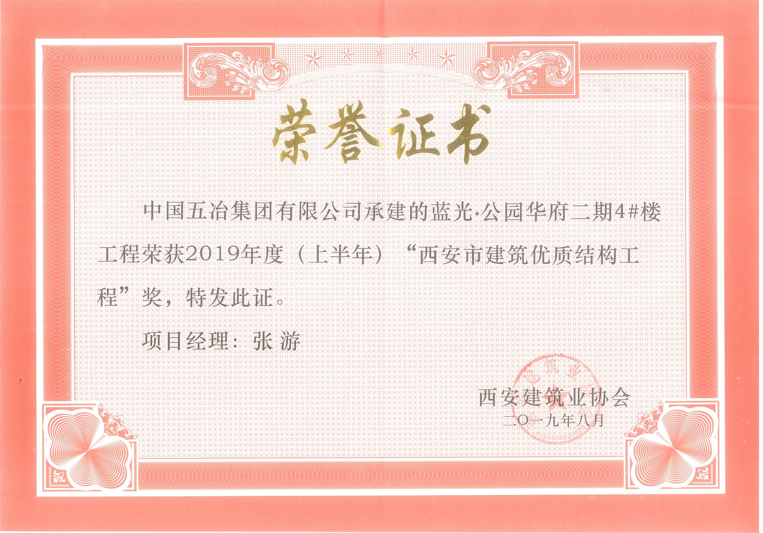 西安藍光公園華府二期—2019年度(上半年)西安市優質結構工程