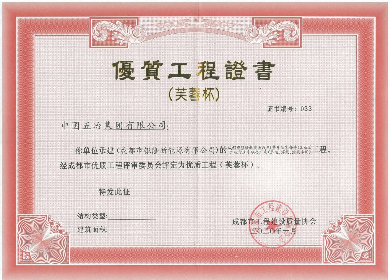 成都市銀隆新能源汽車(整車及零部件)工業園二標段客車聯合廠房(總裝、焊裝、涂裝車間)項目-2019年度芙蓉杯