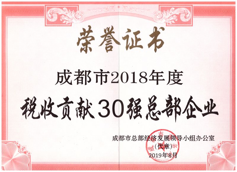 成都市2018年度稅收貢獻30強總部企業