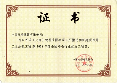 可口可樂(lè)(云南)飲料有限公司工廠搬遷和擴(kuò)建項(xiàng)目施工總承包安裝工程-2018年度全國(guó)冶金行業(yè)優(yōu)質(zhì)工程獎(jiǎng)