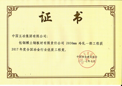 包鋼稀土鋼板材有限責(zé)任公司2030mm冷軋一部工程-2017年度全國(guó)冶金行業(yè)優(yōu)質(zhì)工程獎(jiǎng)