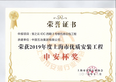 寶之云IDC四期3號樓機房總包工程-2019年度上海市優質安裝工程申安杯獎