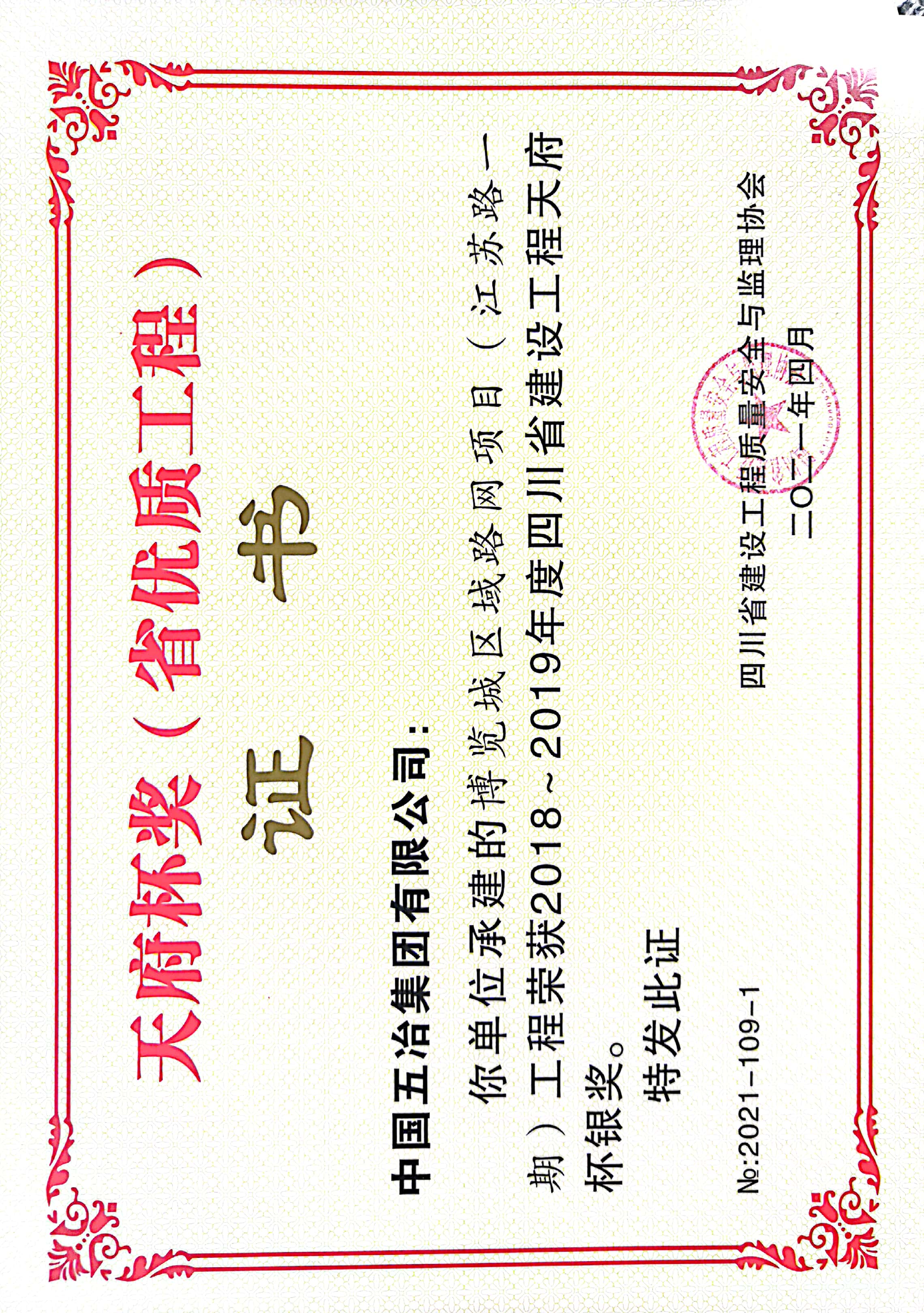 博覽城區域路網項目(江蘇路一期)-2018~2019年度四川省建設工程天府杯銀獎
