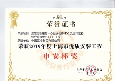 嘉定行政服務中心數據機房IDC及城市運行綜合管理中心EPC工程-2019年度上海市優質安裝工程申安杯獎