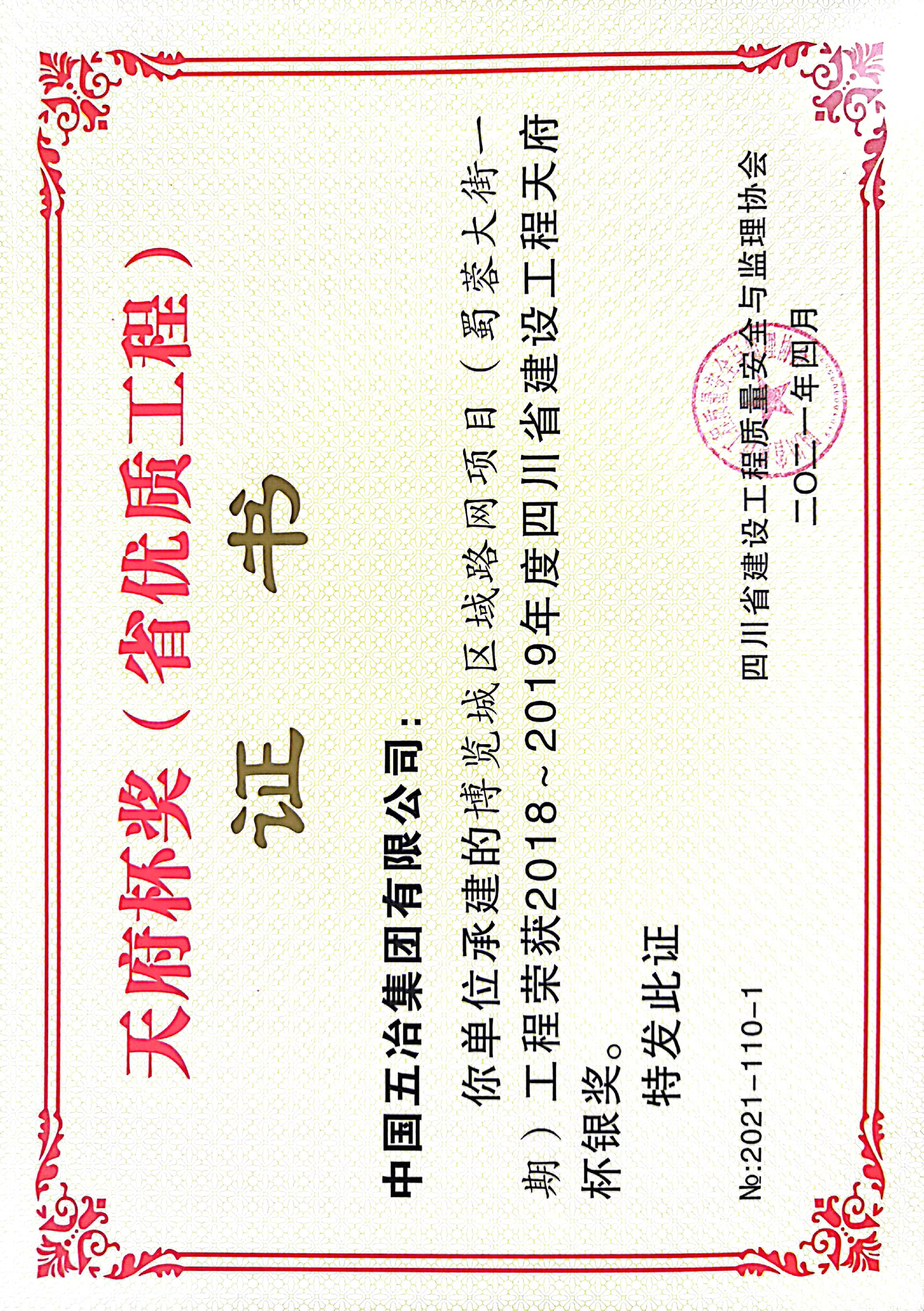 博覽城區域路網項目(蜀蓉大街一期)-2018~2019年度四川省建設工程天府杯銀獎