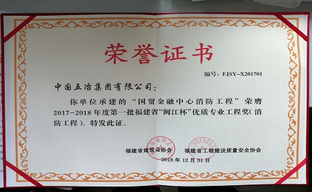 國貿金融中心消防工程——2017—2018年度第一批福建省“閩江杯”優質專業工程獎(消防工程)