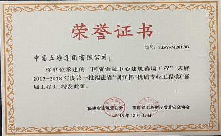 國貿金融中心建筑幕墻工程——2017—2018年度第一批福建省“閩江杯”優質專業工程獎(幕墻工程)