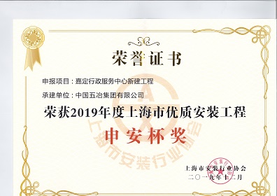 嘉定服務中心項目——2019年上海市優質安裝工程“申安杯”獎