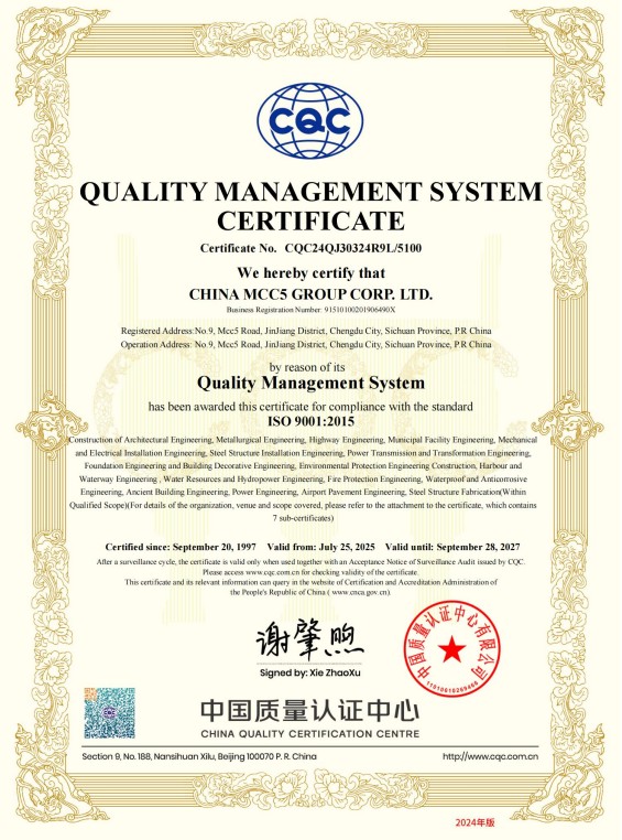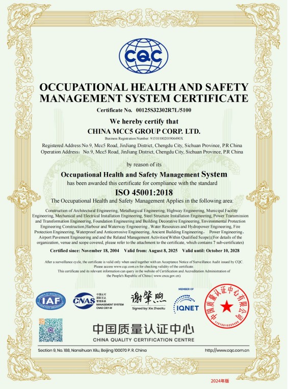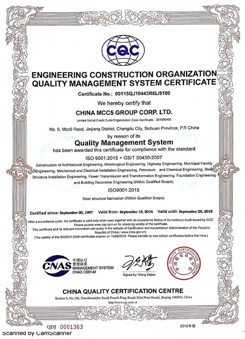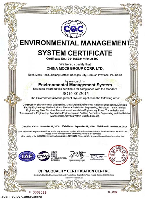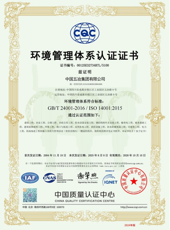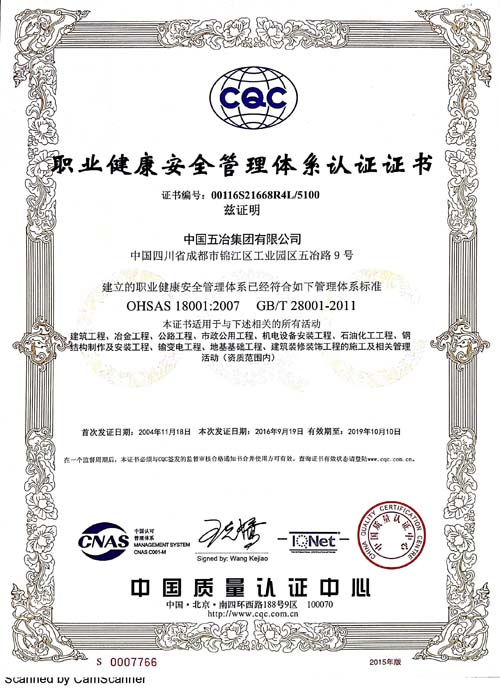 中國(guó)五冶集團(tuán)有限公司(以下簡(jiǎn)稱(chēng)中國(guó)五冶集團(tuán)),1997年通過(guò)ISO9000質(zhì)量體系認(rèn)證。2004年,中國(guó)五冶集團(tuán)按照ISO9001、ISO14001、OHSAS18001國(guó)際標(biāo)準(zhǔn)要求,建立質(zhì)量環(huán)境職業(yè)健康安全整合型管理體系并通過(guò)三標(biāo)一體認(rèn)證。2011年,中國(guó)五冶集團(tuán)按照GB/T50430-2007《工程建設(shè)施工企業(yè)質(zhì)量管理規(guī)范》要求,建立并通過(guò)質(zhì)量環(huán)境職業(yè)健康質(zhì)量管理規(guī)范的三標(biāo)一規(guī)范體系認(rèn)證,至今保持三標(biāo)一規(guī)范管理體系連續(xù)、平穩(wěn)和協(xié)調(diào)運(yùn)行。