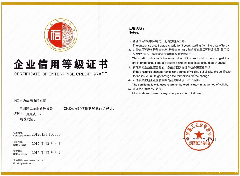 全國企業(yè)信用等級證書
