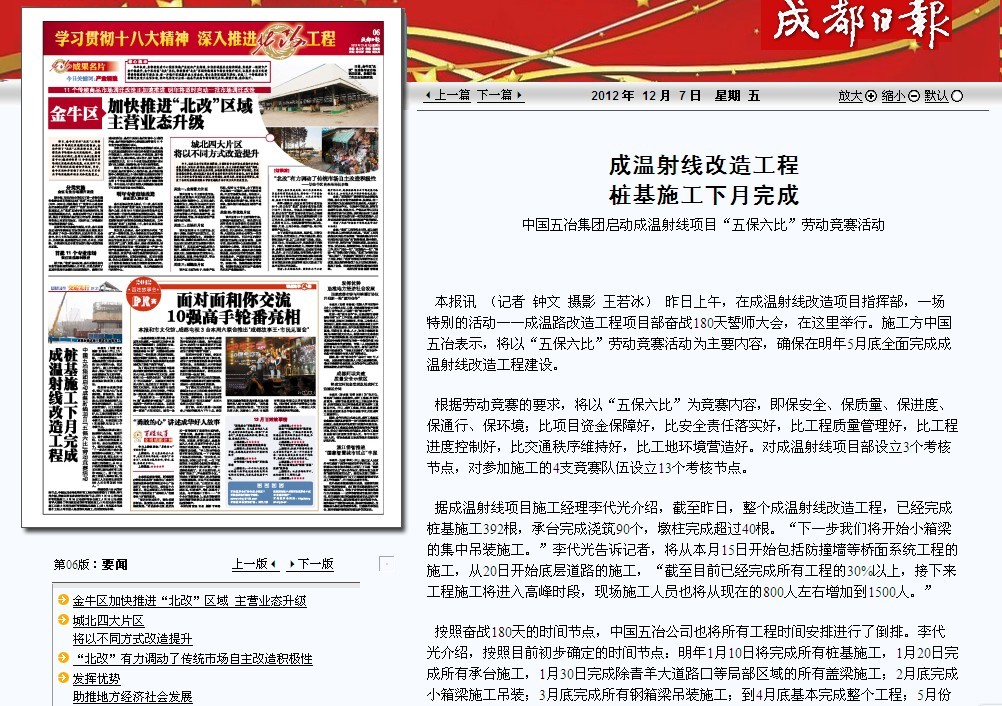 成都日報(bào)報(bào)道:成溫射線改造工程樁基施工下月完成
