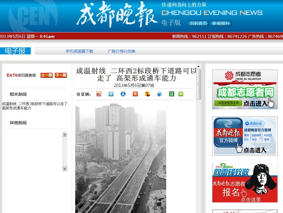 昨日,成都晚報記者從中國五冶成溫路改造項目部獲悉,成溫射線的交安設施基本安裝到位,已具備通車條件;同時,來自二環路改造西2標段施工單位成都建工集團的消息,二環路西2標段達到通車條件,今天起,這段長約6公里的新二環就將全面呈現在市民面前。據記者昨日體驗,這兩段路的底層道路均已全面放開交通。