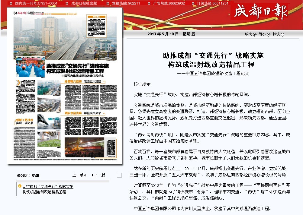 中國五冶集團有限公司作為在川大型央企,承建了其中的成溫路改造工程。