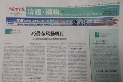 11月1日,《中國冶金報》05版品牌之路欄目以“巧借東風揚帆行”為題,對中國五冶集團在燒結低溫余熱發電領域首次突破進行了詳細報道。
