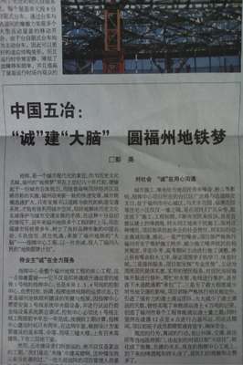 7月2日,《建筑時(shí)報(bào)》第3233期第八版營(yíng)造板塊以《“誠(chéng)”建“大腦”?圓福州地鐵夢(mèng)》為題,從“待業(yè)主‘誠(chéng)’在全力服務(wù)”、“對(duì)社會(huì)‘誠(chéng)’在用心溝通”、“攜團(tuán)隊(duì)‘誠(chéng)’在團(tuán)結(jié)奉獻(xiàn)”三個(gè)層面對(duì)中國(guó)五冶承建的福州地鐵指揮中心工程的建設(shè)過程進(jìn)行了如實(shí)報(bào)道。