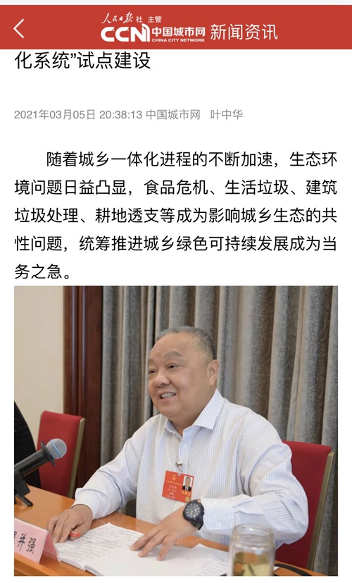 3月5日,《中國城市報》重點報道了程并強代表關于“推進‘生態價值化系統’試點建設”的議案建議。