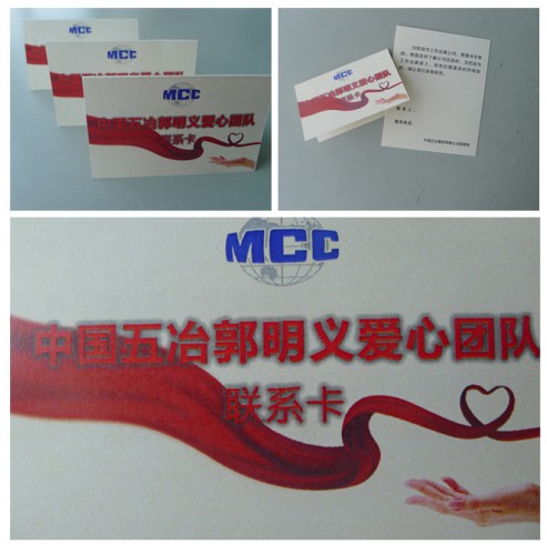 ????? 在全國廣泛深入持久地開展學(xué)雷鋒活動之際,公司團(tuán)委不僅制定了志愿服務(wù)年度工作計劃,還號召公司青年向新時期雷鋒精神的傳承者郭明義同志學(xué)習(xí),并組建了一支由百余名青年組成的“郭明義愛心團(tuán)隊(duì)”,圍繞公司生產(chǎn)經(jīng)營廣泛開展“崗位學(xué)雷鋒、爭做好員工”活動。為使活動落到實(shí)處,起到實(shí)效,公司團(tuán)委設(shè)計制作了“中國五冶郭明義愛心團(tuán)隊(duì)聯(lián)系卡”,做為愛心傳遞的有效載體發(fā)放到職工手中。