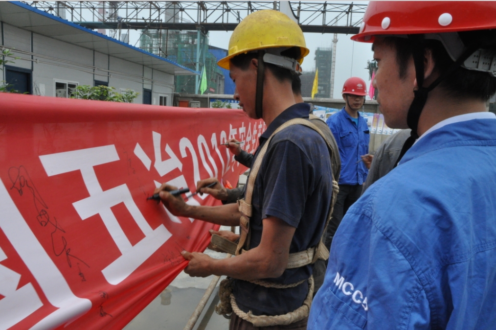 為了認真貫徹全國第十二個安全生產月和全總第十四屆“安康杯”競賽活動精神,營造安全氛圍,唱響“科學發展、安全發展”主旋律,公司2012年安全生產月活動、安康杯暨青安杯活動6月6日在威鋼施工現場拉開了序幕。經過前期策劃,制定了2012年安全生產月和“安康杯”、“青安杯”活動方案,并陸續在全公司范圍內開展。6月6日下午5點30分,威鋼焦化項目現場熱鬧非凡,200余名農民工和爐窯分公司、一分公司以及機電分公司項目管理人員一起鄭重宣誓:“保證安全生產是我們崇高的職責,為了企業整體利益,為了個人生命安全,為了家庭幸福安康,我承諾一定要恪盡職守,遵守紀律,規范作業,文明施工,確保安全!”整齊洪亮的宣誓聲在繁忙的工地上空響起,這也標志著“中國五冶集團2012年安全生產月活動、安康杯暨青安杯活動”正式啟動。