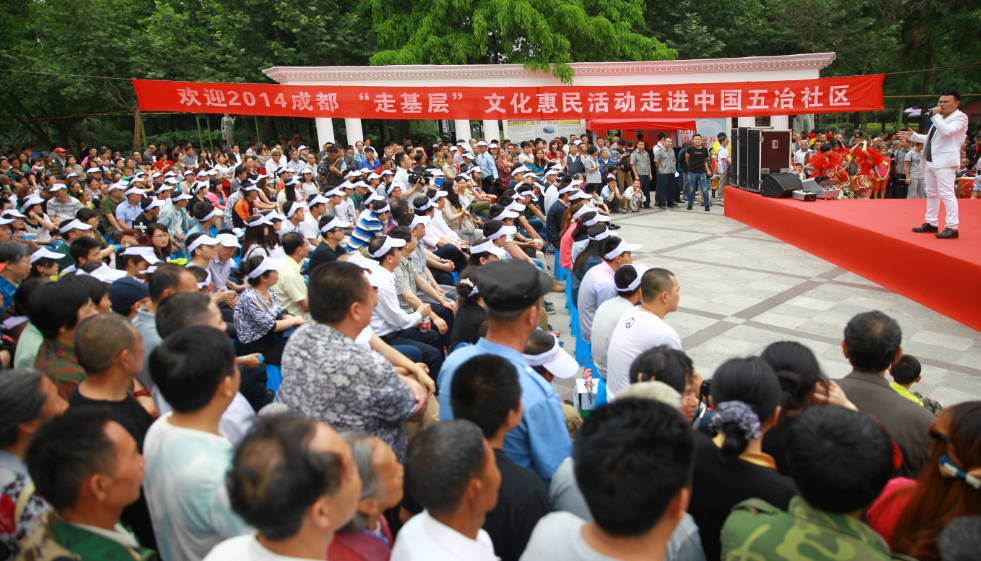 5月25日下午3點,成都市委宣傳部主辦的2014“走基層”文化惠民活動走進五冶社區,在新華公園廣場舉行慰問演出。東方茉莉女子國樂團等知名演藝團體和馬渲子、郭仕軍、何剛等一批國家一級演員、四川青年喜劇演員、男高音歌唱家等本土文化名人到場獻藝。我公司教培中心選派的舞蹈《歡歌起舞》代表中國五冶集團青年志愿者同臺演出。