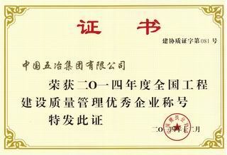 ??2015年2月,中國五冶集團有限公司榮獲2014年度全國工程建設質(zhì)量管理優(yōu)秀企業(yè)稱號。